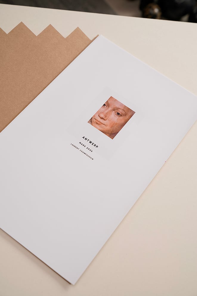 Mise en page en hommage à Anne Demeulemeester (carton invitation défilé été 1988)